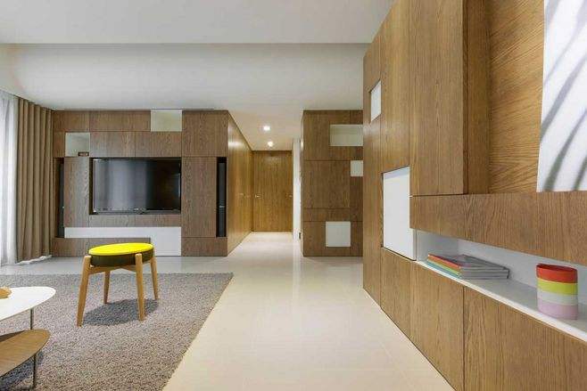 假如你室內的木色不需要和諧起來,那就需要作出對比來,首先你要確定你的防火板是冷色的還是暖色的,這個基調是需要統一協調的,至于具體到什么紋理的飾面可以不去糾結,比如你的茶幾是深色的木紋,地板是淺色的,但兩者都是暖色調的,這樣就可以了。