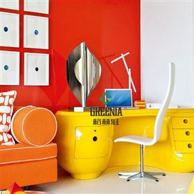芒果色防火板G208-G可用于家居中的室內(nèi)裝飾、家具的表面、臺(tái)面、門、櫥柜、商場(chǎng)貨架、試衣間、展柜、書柜、衣柜、辦公桌等地方。
